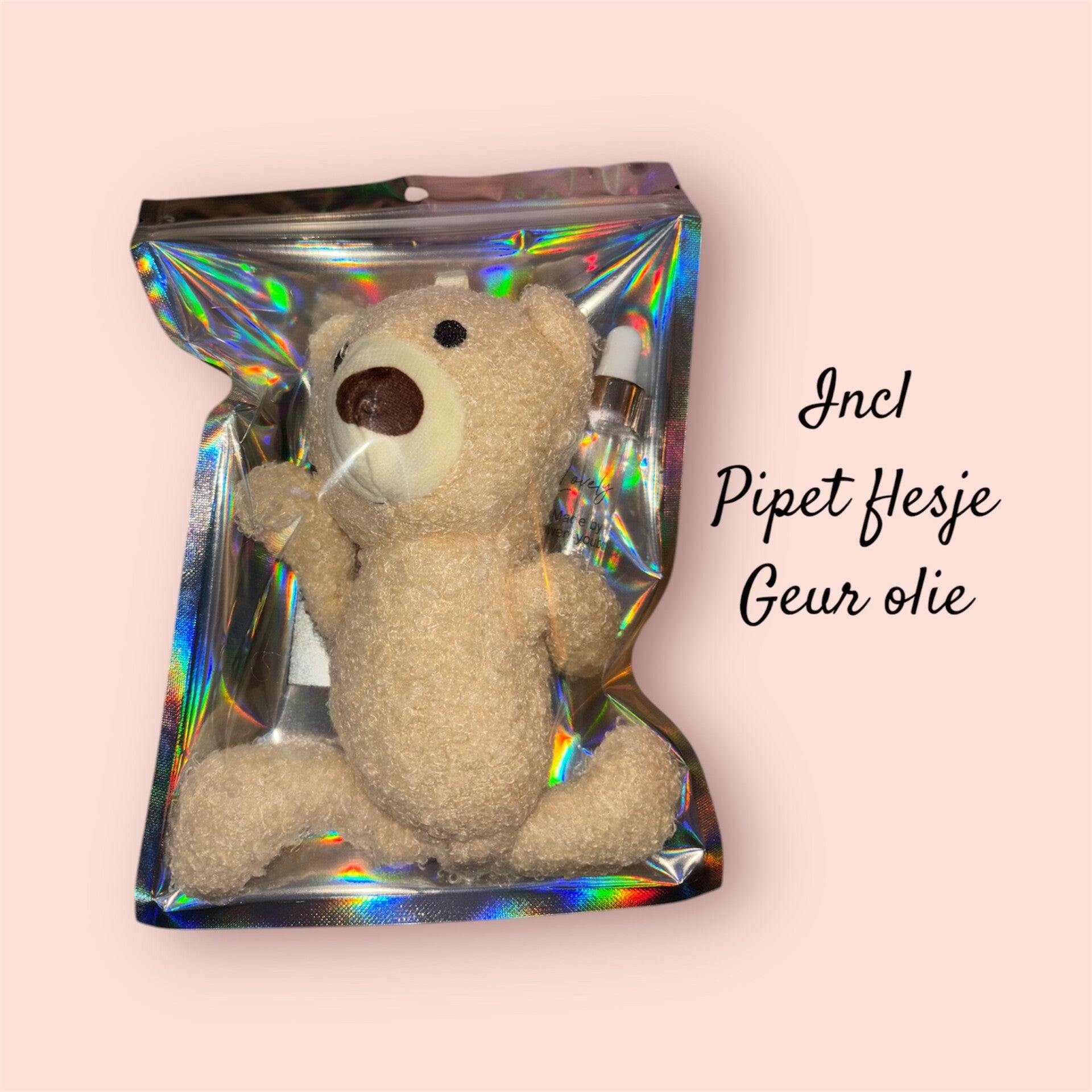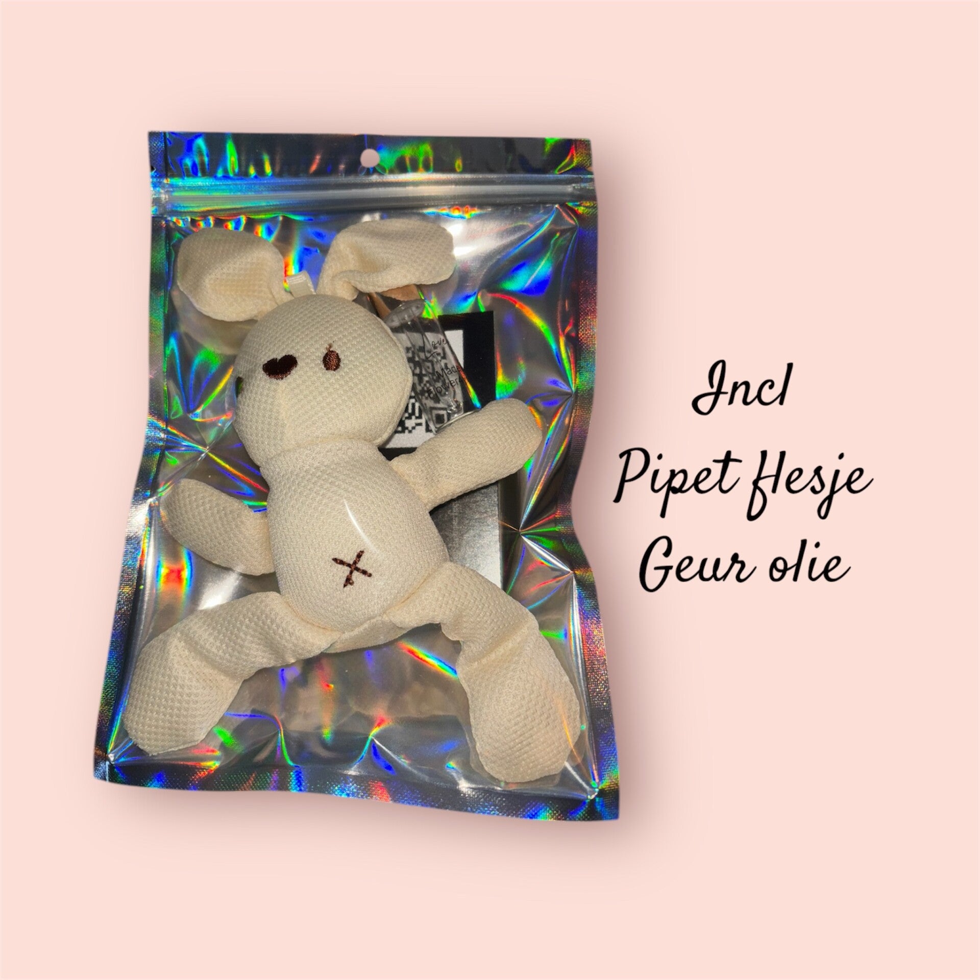 Schattige konijn of beer met apart bijgeleverde geur olie in een pipet flesje.