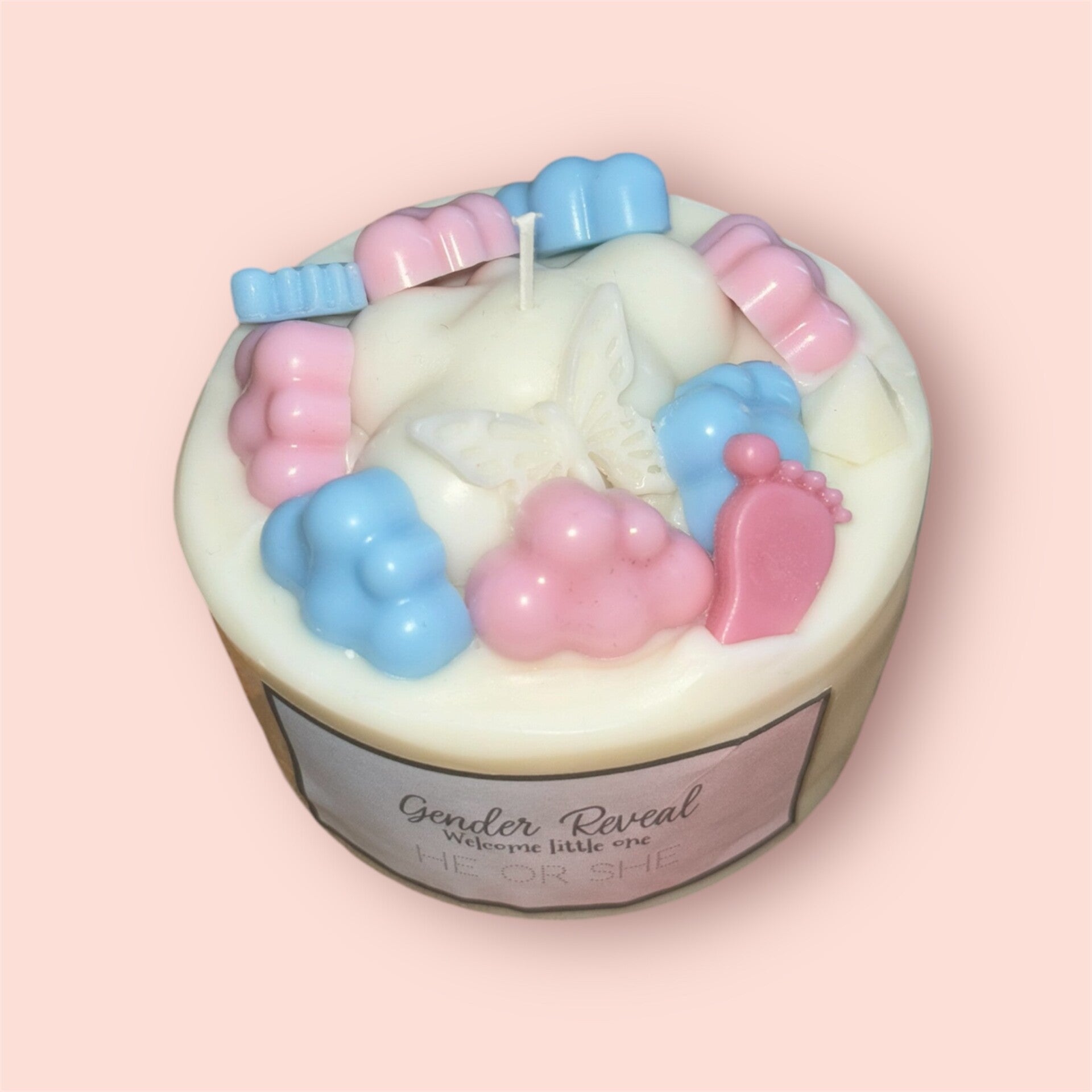 Steek de cake Candle aan en na smelten verschijnt er een gender kleur.