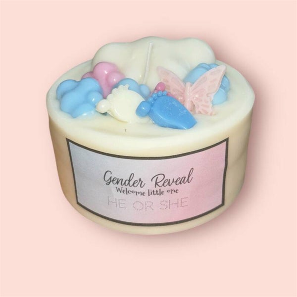 Steek de cake Candle aan en na smelten verschijnt er een gender kleur.