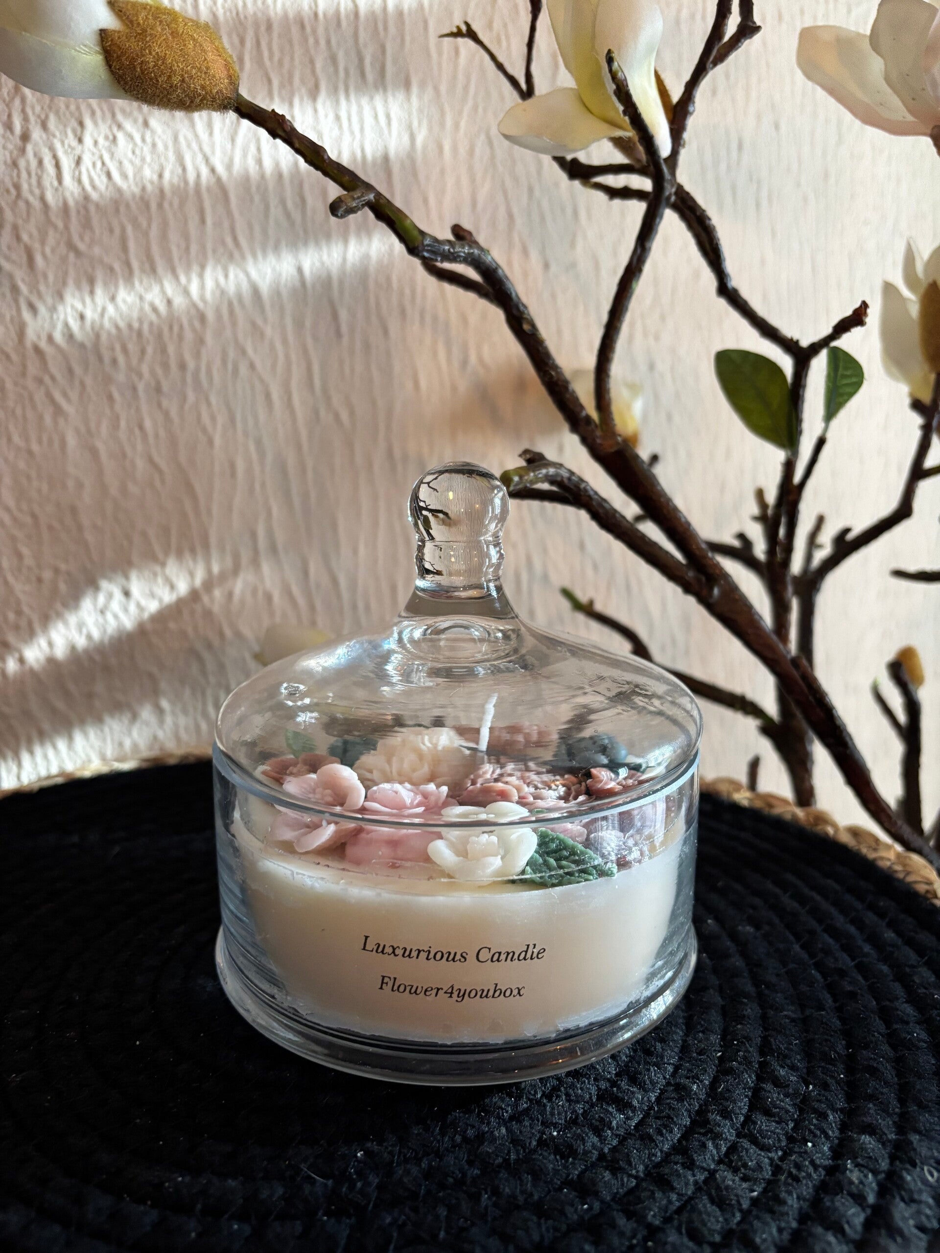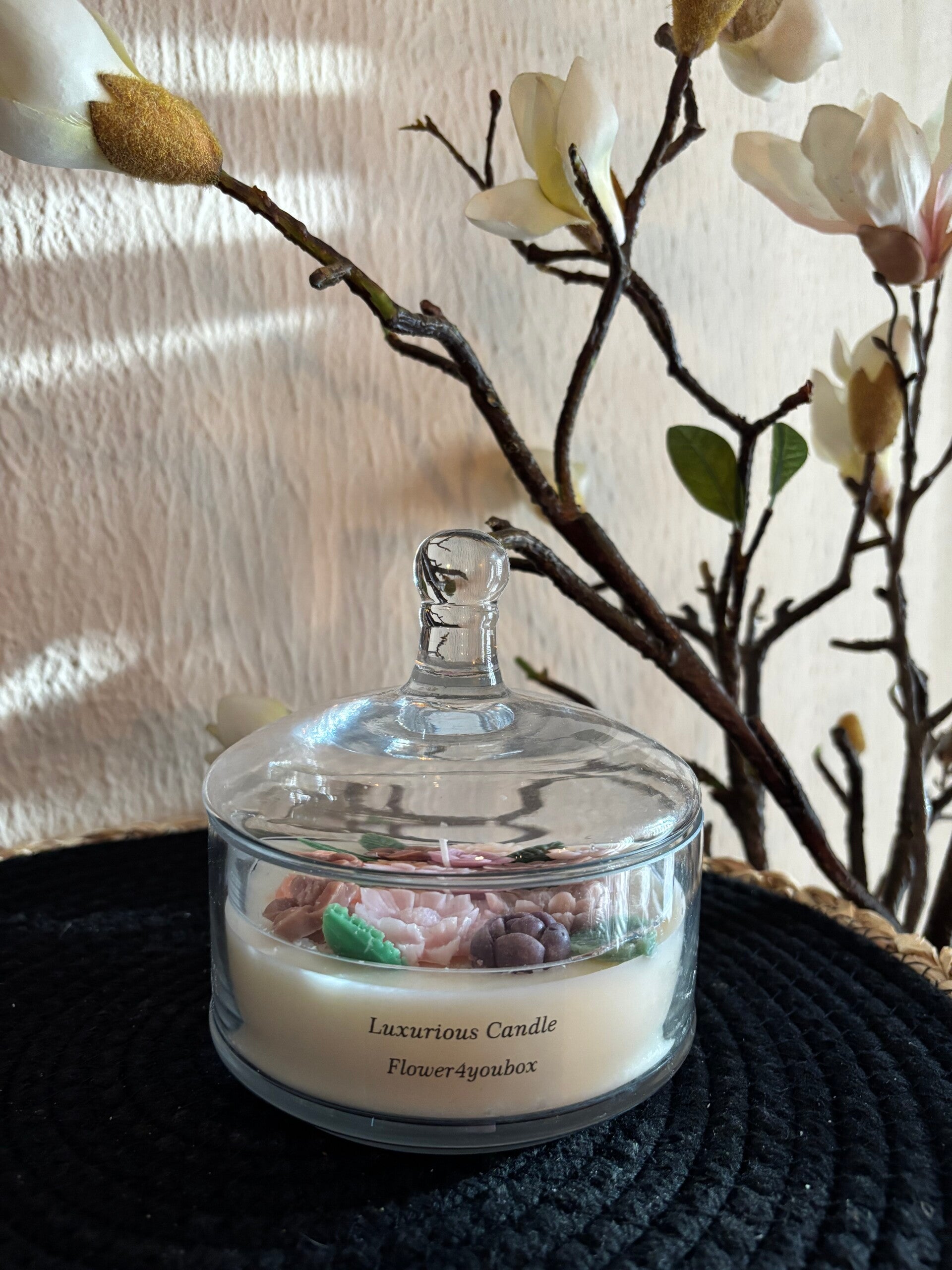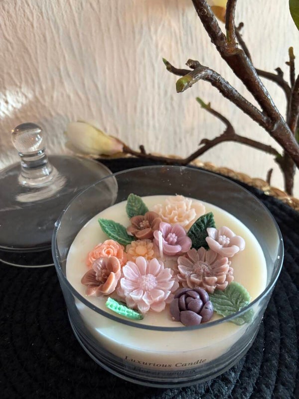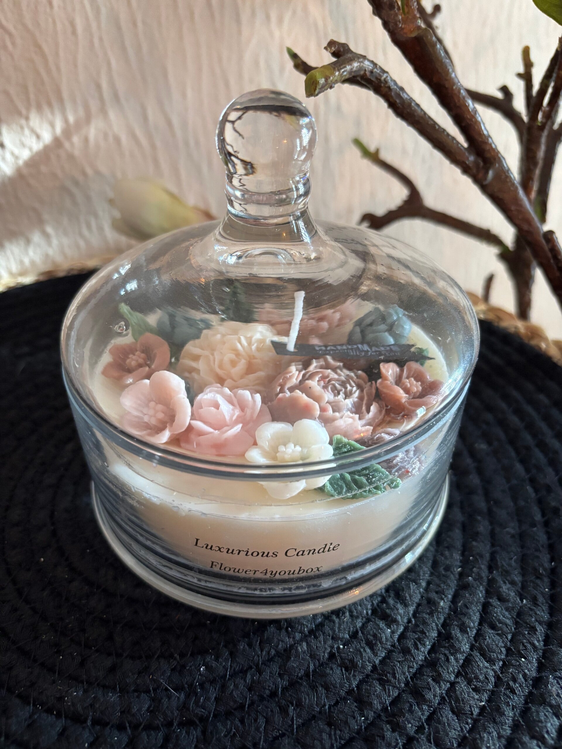 Stolp laag met nude tinten wax bloemen. Een absolute eye catcher in je huis of als kado.