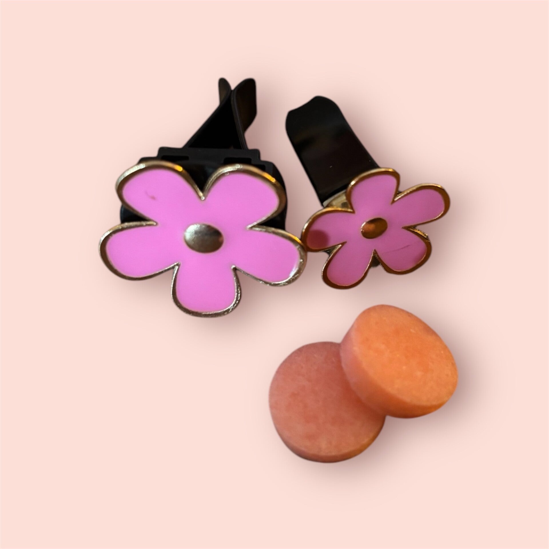 Geur clip 2 stuks , 1 voor sier en de ander om met een tablet te vullen, Geur tablet (2stuks) die erbij komen zijn Peach.