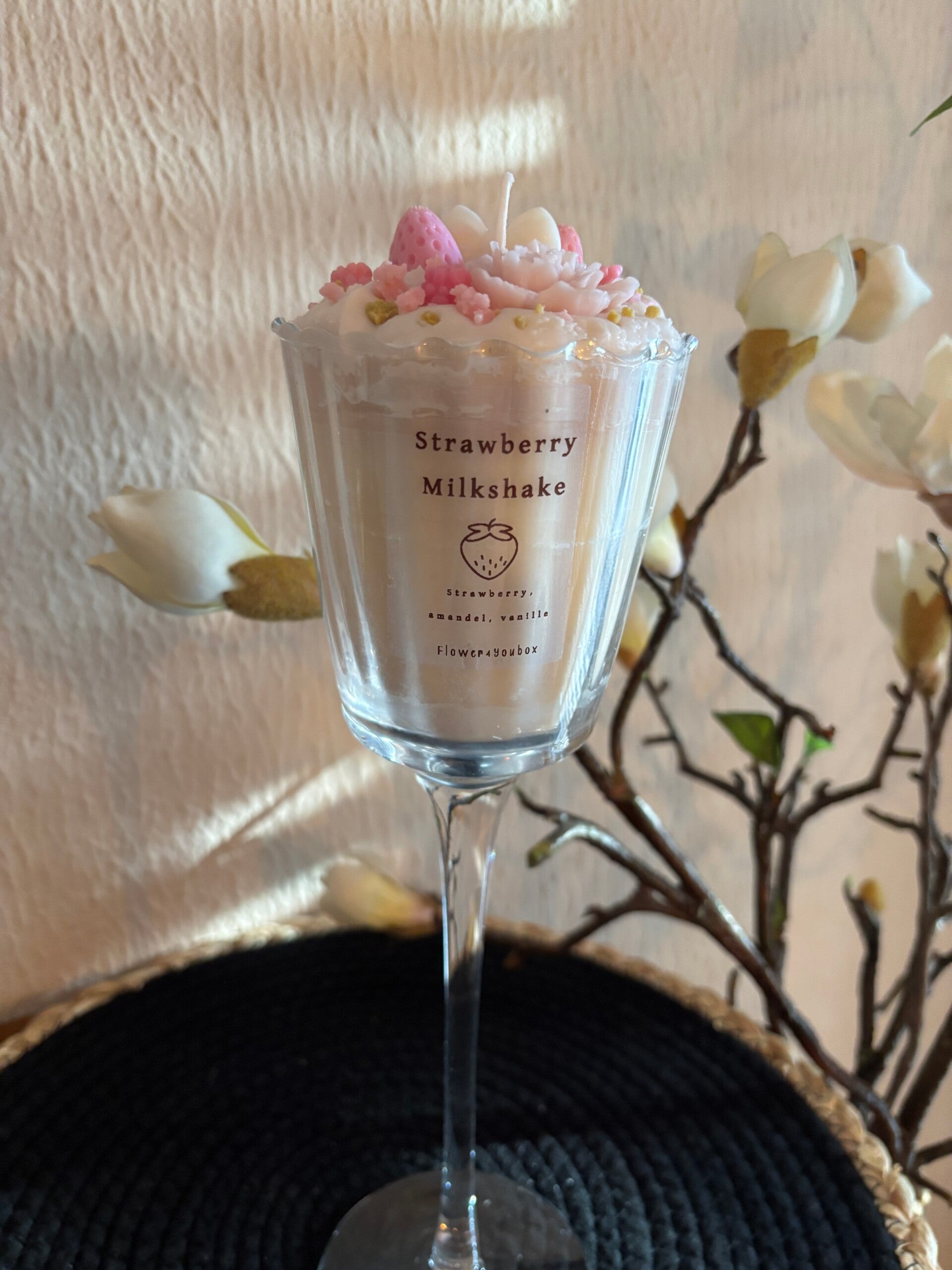 Mooie hoge glazen palen. Gedecoreerd als een milkshake. Bevat laagjes met de heerlijke geur amandel en vanille.