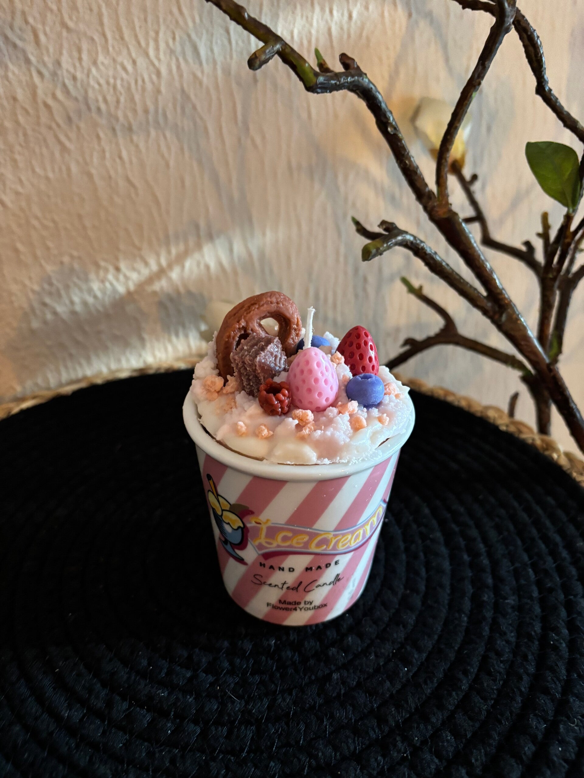 Mooie Ijscoupe kaars in een mooie beker.