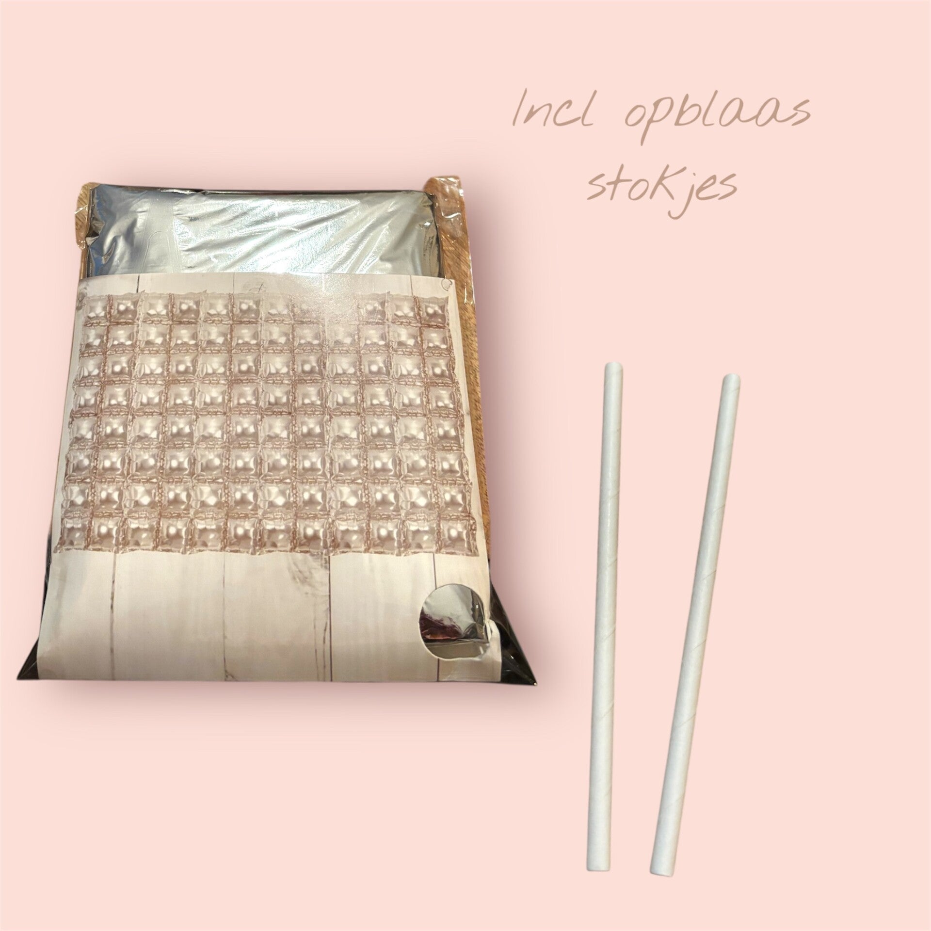 Champagne kleur folie ballon om een mooie wand mee te creëren. Incl 2 opblaas stokjes.
