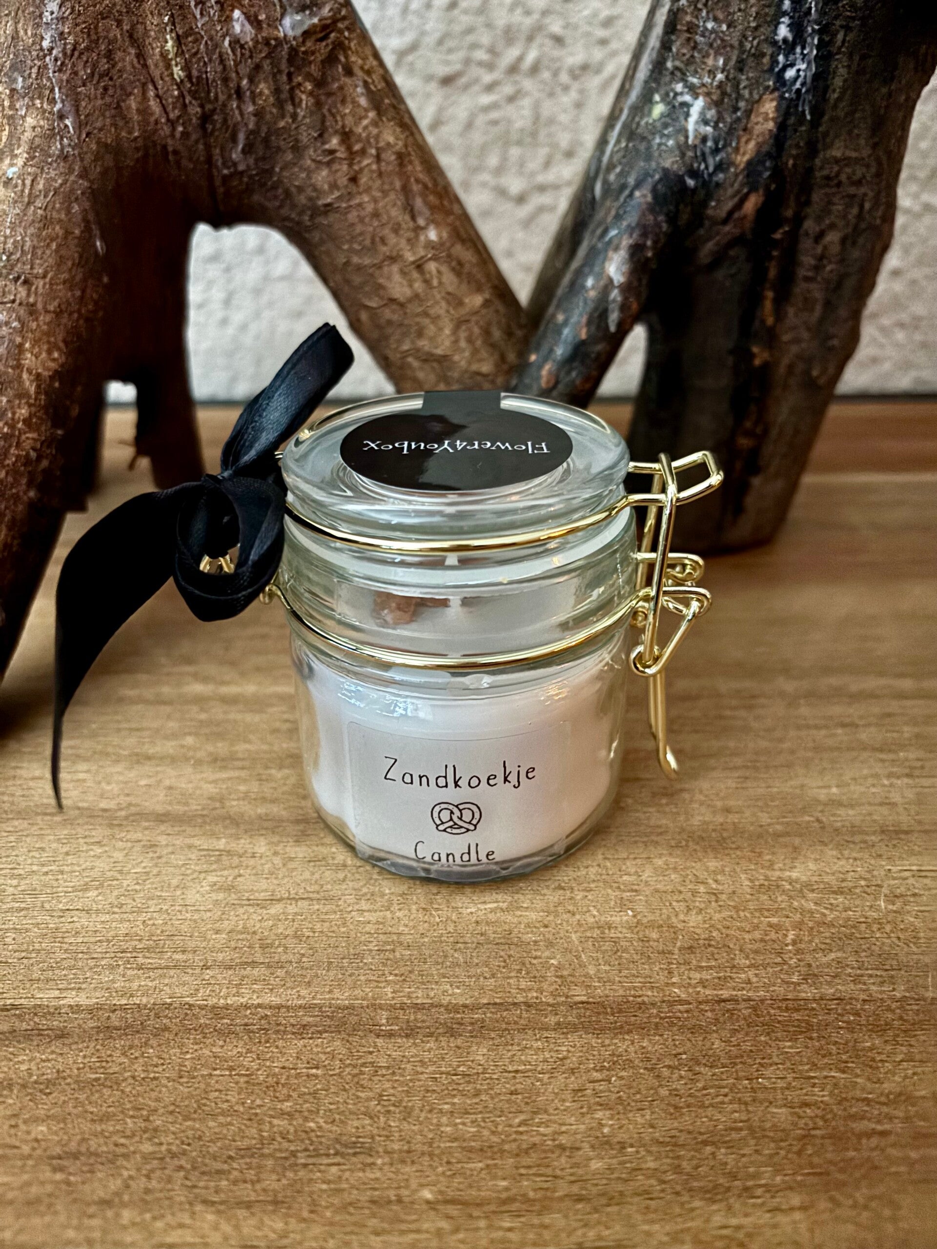 Deze kaars komt in een smaakvol klein weck potje met strik.