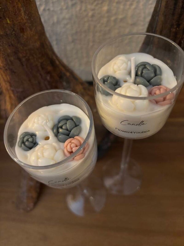 Set van 2 Candle sticks. Met mooie wax vetplanten.
