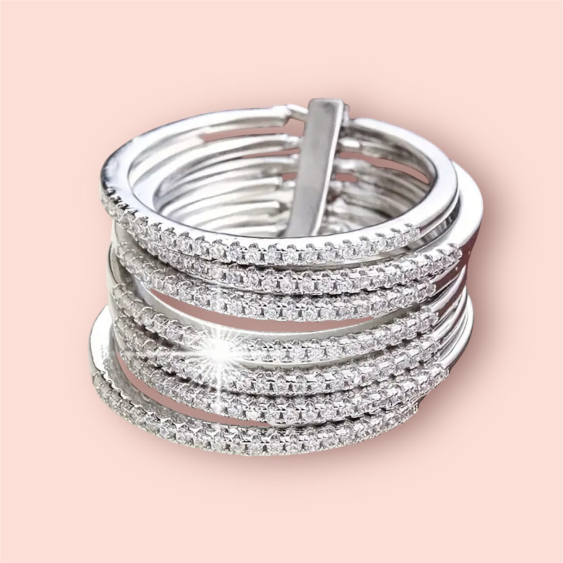 Tingle Ring. 7 losse ringen die onder aan elkaar vast gemaakt zijn. Bijzonder mooi effect.