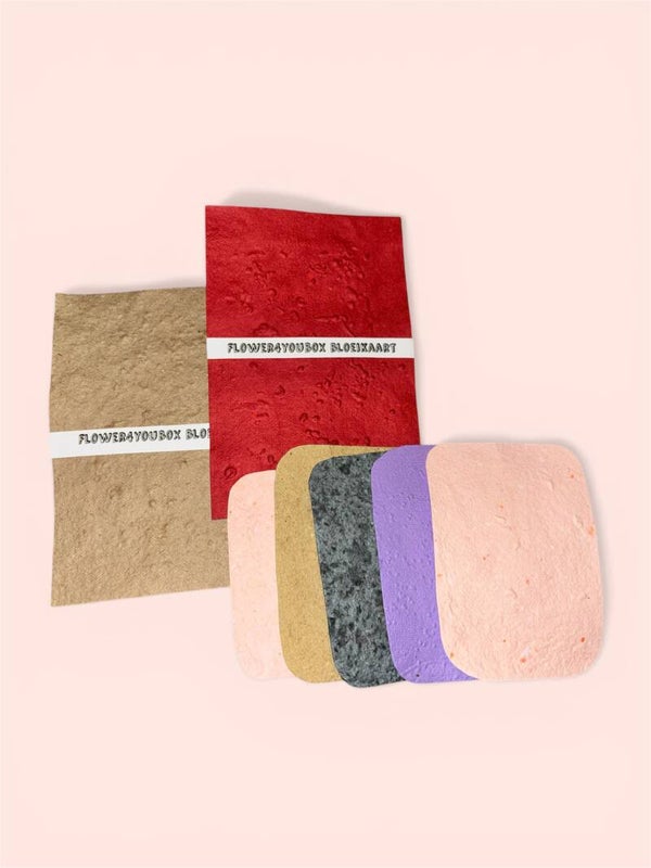 Blossom paper set, verschillende bloeipapieren als set. Leg,water en groei